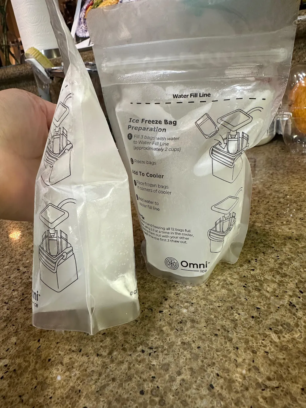 I also purchased the ice bags which is a great idea. I freeze all 12 bags and can rotate them to keep the water cold.